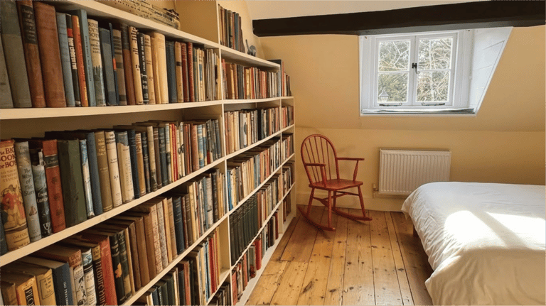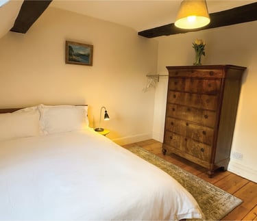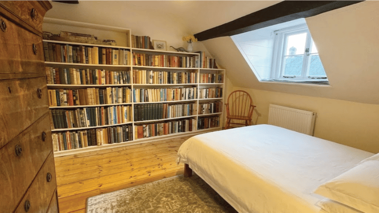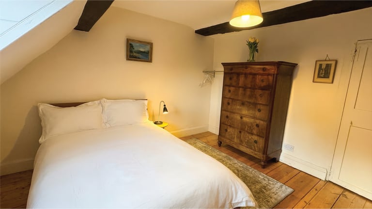 The second bedroom on the top floor (Bedroom 4) is a real suntrap, with a beautiful antique chest of drawers and another library with a collection of old books. This bedroom has a double bed and is very cute.